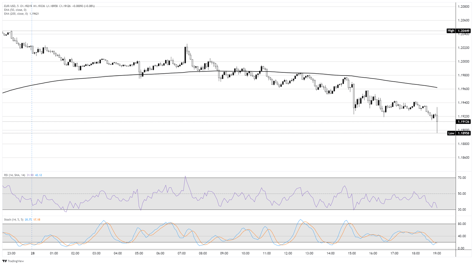 EUR/USD five-minute chart