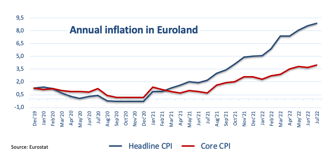 In the euro docket, final inflation figures in the euro area showed the headline CPI rose 8.9% in the year to July and 0.1% vs. the previous month.