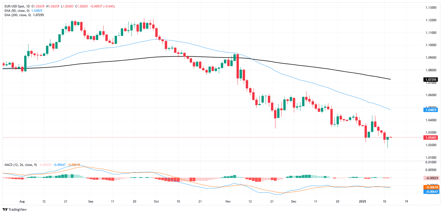 EUR/USD continued to explore the bearish side of the charts on Monday, declining into the 1.0200 handle for the first time since late 2022, etching in a fresh 26-month low before staging half-hearted recovery later in the day.