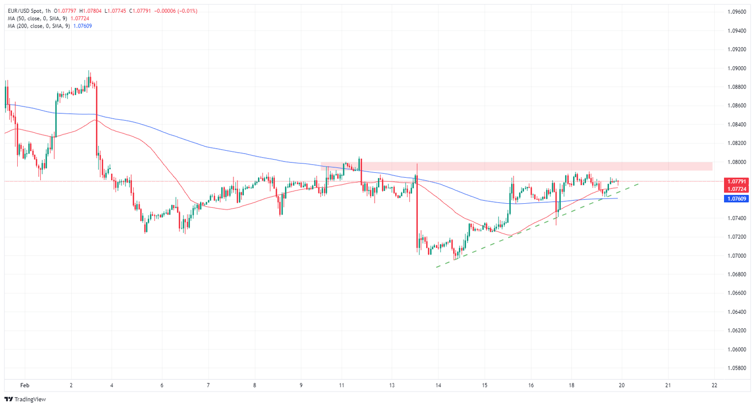 EUR/USD remains pinned below the 1.0800 handle as the pair struggles to develop momentum after finding a fresh low last week near 1.0700. Intraday technical action is getting hampered by the 200-hour Simple Moving Average (SMA) near 1.0760, and a near-term technical ceiling is priced in near 1.0790.