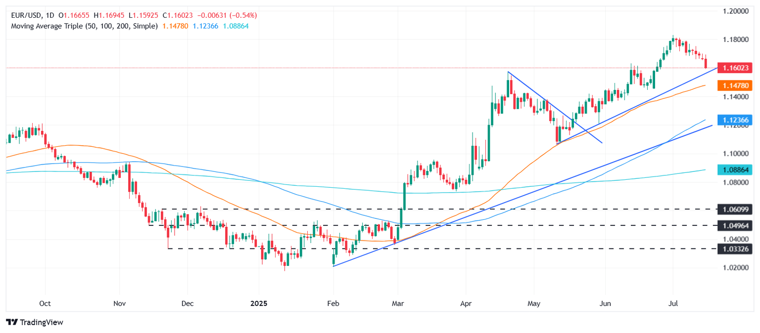 The EUR/USD fell some 0.55% on Tuesday after the latest US inflation report revealed that prices are edging higher, justifying the Federal Reserve's current policy stance. Hence, traders trimmed bets that the Fed would cut rates at the July meeting. At the time of writing, the pair trades at 1.1599, having reached a high of 1.1694.