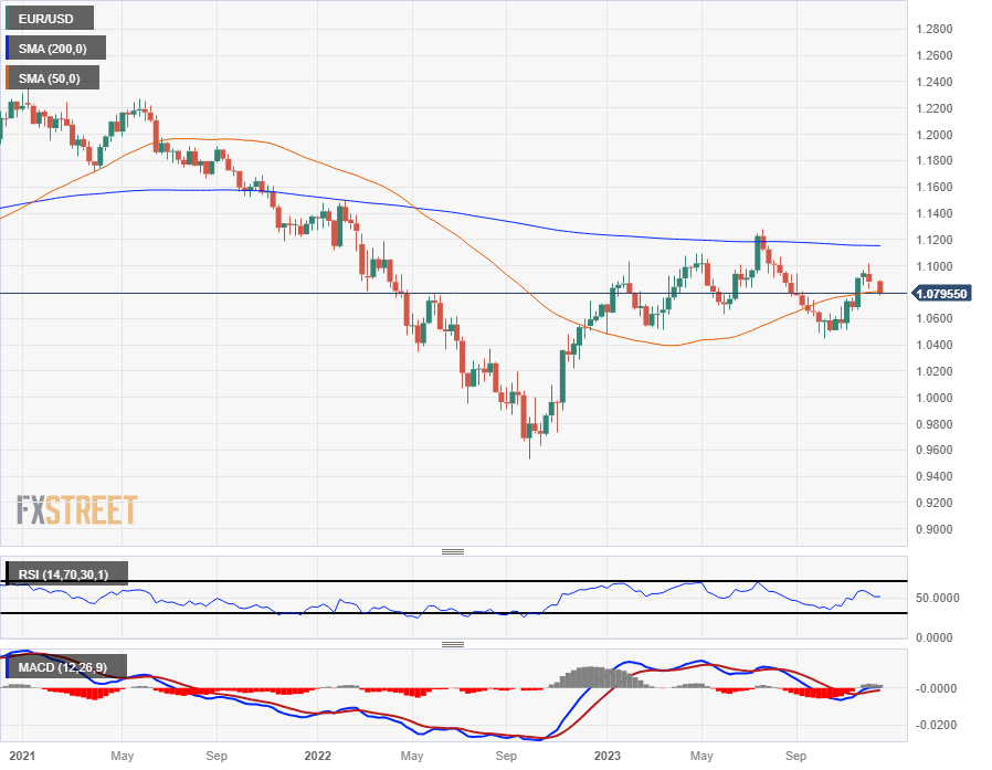 The EUR/USD's decline below 1.0800 on Tuesday sees the pair chalking in a fifth straight day of declines, and the Euro is down a little over two percent against the US Dollar from last week's peak bids near 1.1020.