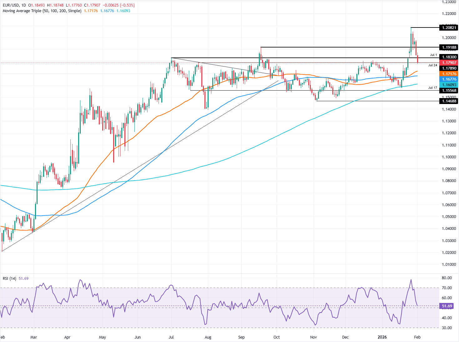 - EUR/USD extends losses as last week’s metals sell-off fuels safe-haven flows into the US Dollar.