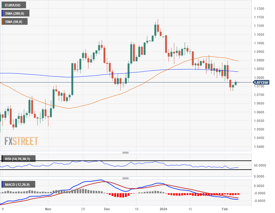 EUR/USD saw a thin grind higher on Wednesday amidst a mid-day dip-and-rally in the US market session followed by a slim recovery into the day’s mid-range. The pair tested back into familiar territory near 1.0750 after touching a minor intraday high of 1.0784.