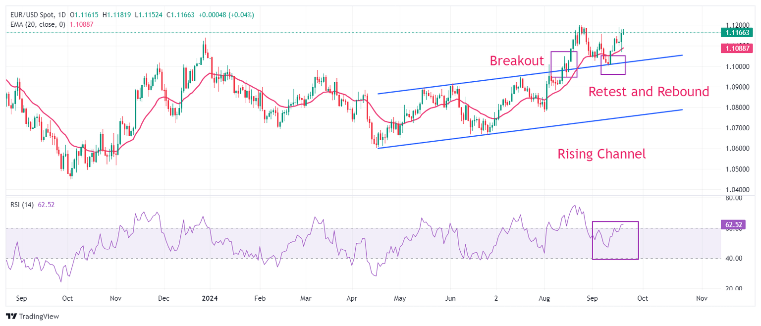 - EUR/USD struggles to sustain above 1.1150 in Friday’s North American session. The major currency pair faces pressure as the US Dollar bounces back. While the Euro (EUR) performs strongly against other major peers amid growing speculation that the European Central Bank (ECB) will leave its Deposit Facility rate unchanged at 3.5% in its October monetary policy meeting.