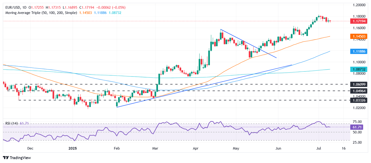 Euro technical outlook: EUR/USD clings to 1.1700 as the pair consolidates