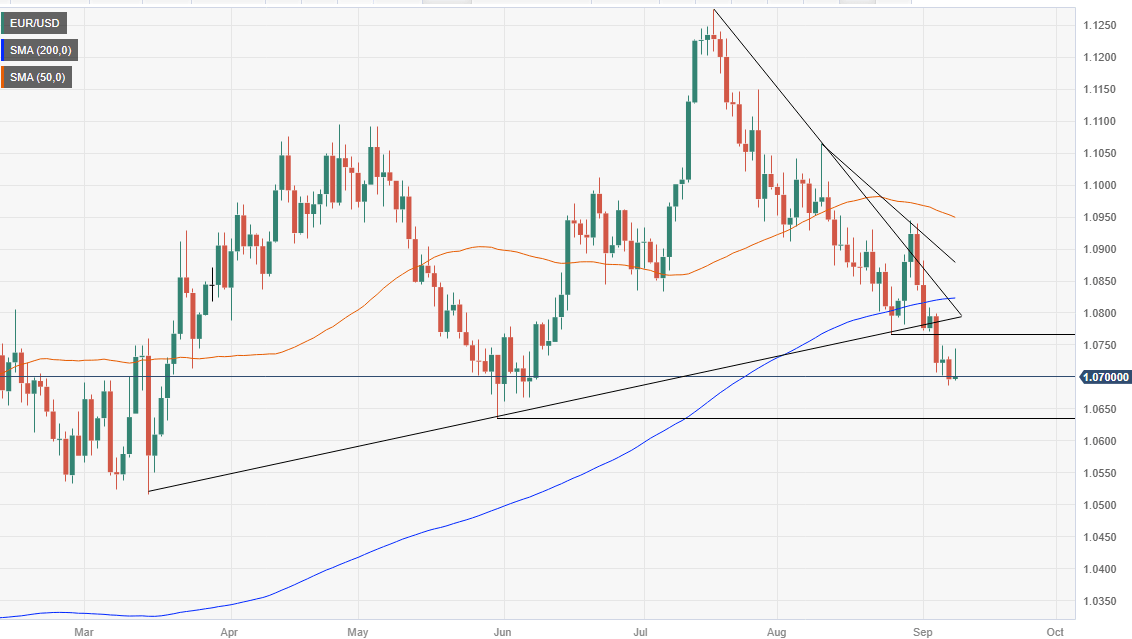 The Euro (EUR) gave back earlier gains achieved vs. the Greenback (USD) in the first hour of the Wall Street opening, which lifted the exchange rate towards its daily high at 1.0743, but the pair reversed its course. The EUR/USD is trading at 1.0699, registering minuscule gains of 0.03%, set to finish the week with losses of 0.69%.