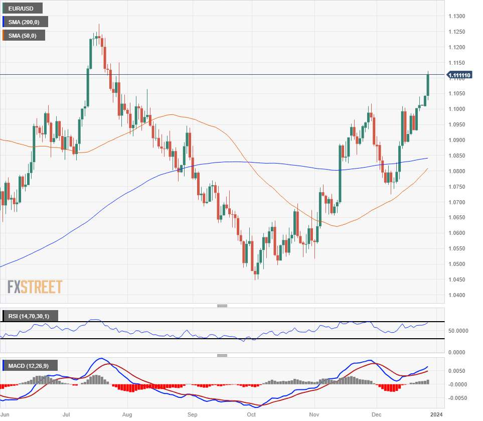 The EUR/USD is gaining ground in thin post-holiday markets as investors gear up for the new year and head towards 2024 with sentiment leaning notably risk-on, pushing the US Dollar (USD) down once more in the last partial trading week of the year.
