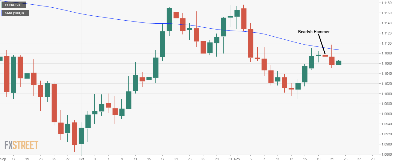 However, the pair managed to avoid a close below 1.1052 – the low of the Wednesday's bearish hammer.