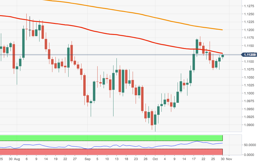 - EUR/USD is prolonging the recovery so far this week and is now testing the key 100-day SMA in the 1.1120 region, coming up from 2-week lows in the 1.1070 region.