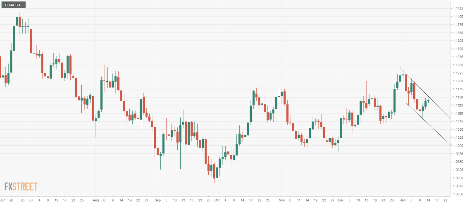 EUR/USD is currently trading at 1.1140, representing marginal gains on the day, having hit a low of 1.1085 on Jan. 10.