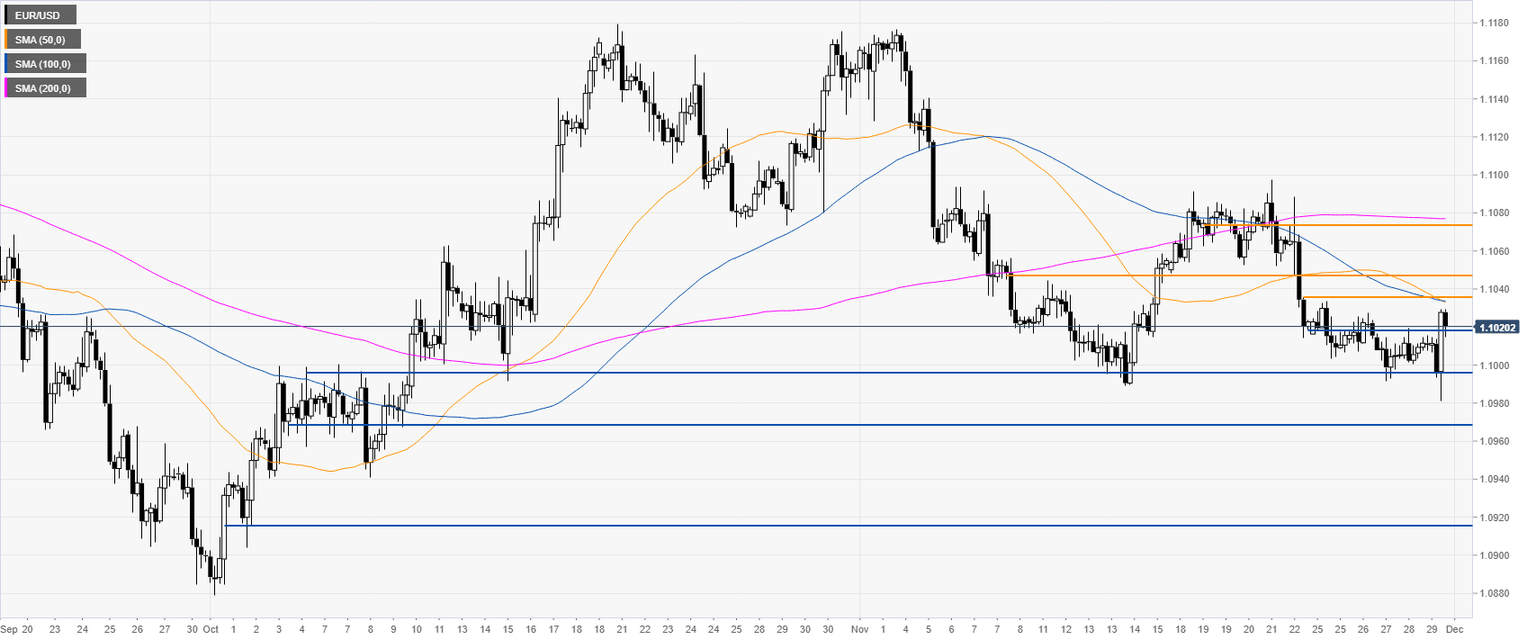 EUR/USD formed a double bottom in November near the 1.1000 handle and rose above the 1.1020 resistance becoming now support. If the bulls can break 1.1035 resistance, the market is set to climb towards the 1.1047 and 1.1075 price levels, according to the