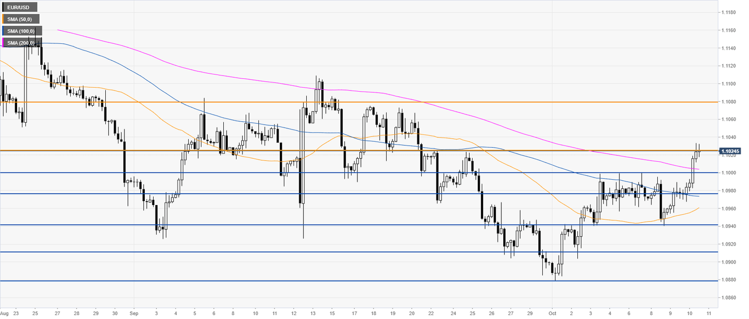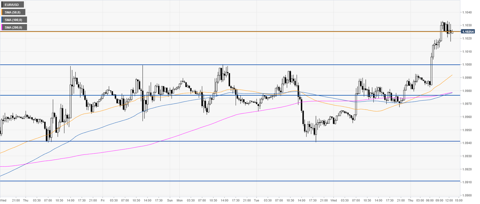 EUR/USD broke above the 1.1000 figure and hit the 1.1025 resistance while trading above its main SMAs. If the market holds above the 1.1000/1.1025 zone, a run to 1.1080 can be on the cards, according to the Technical Confluences Indicator.