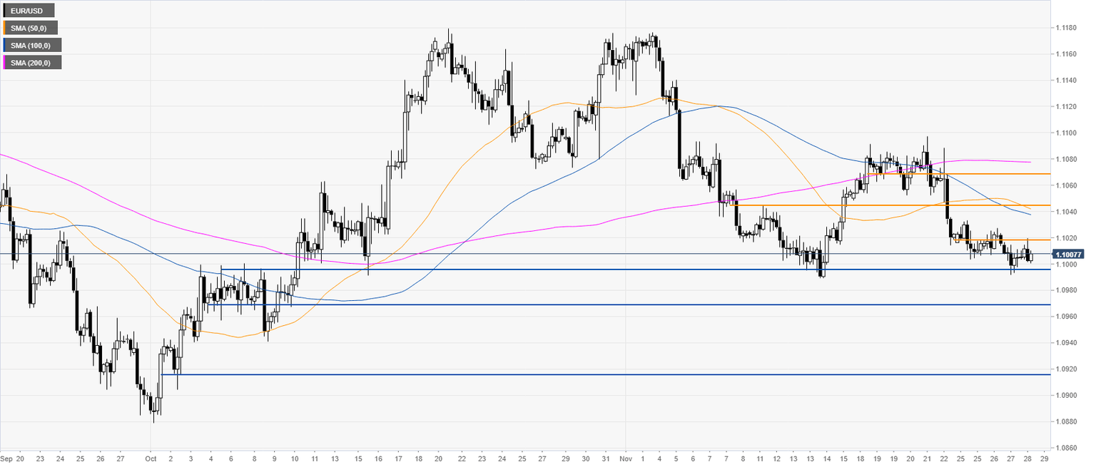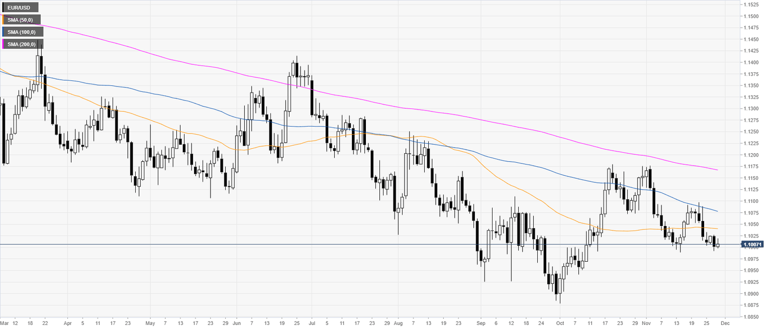 EUR/USD Technical Analysis: Euro hovering above the 1.1000 handle in the New York session