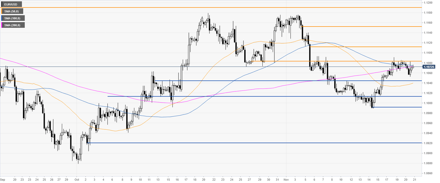 EUR/USD is trading in a narrow range for the third consecutive day, while above the 200 SMA. The critical resistance is seen at 1.1083. If the market closes above the level on a daily basis, it can lead to further gains towards the 1.1112 and 1.1152 resistances.
