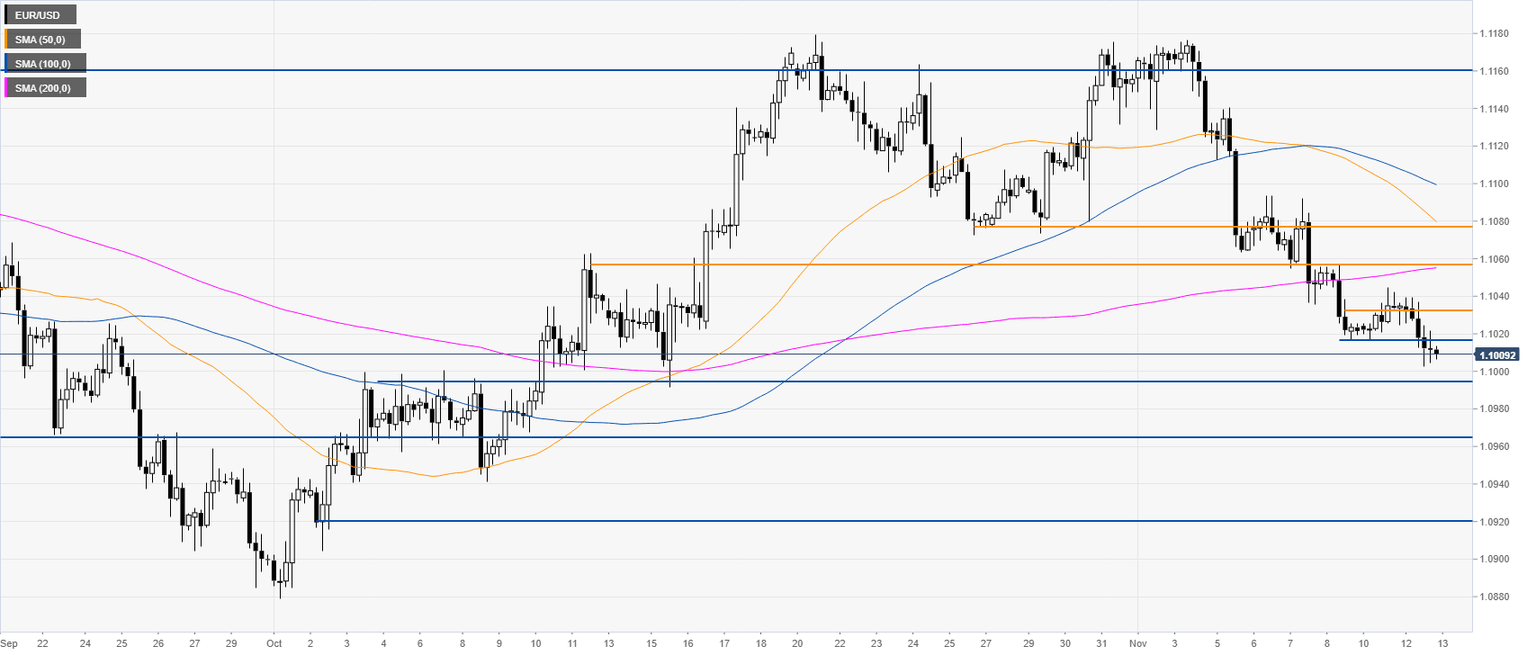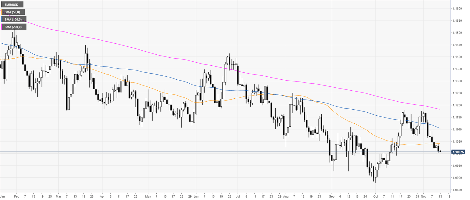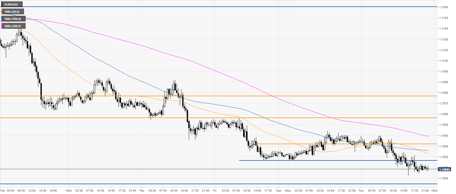 - EUR/USD is entering the Asian session under heavy pressure, nearing the 1.1000 handle.