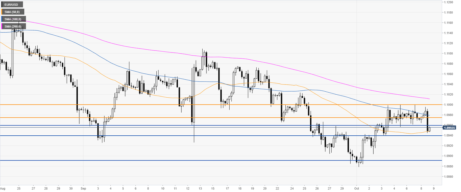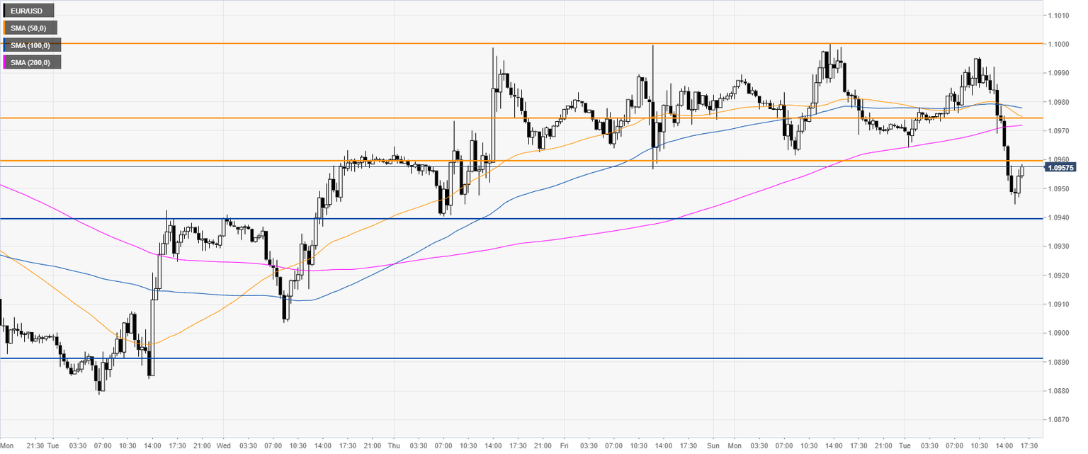 EUR/USD broke below the 1.0960 level and the spot is now consolidating the recent losses just above the 50 SMA on the four-hour chart. A break below 1.0940 would expose the 1.0890 support level, according to the