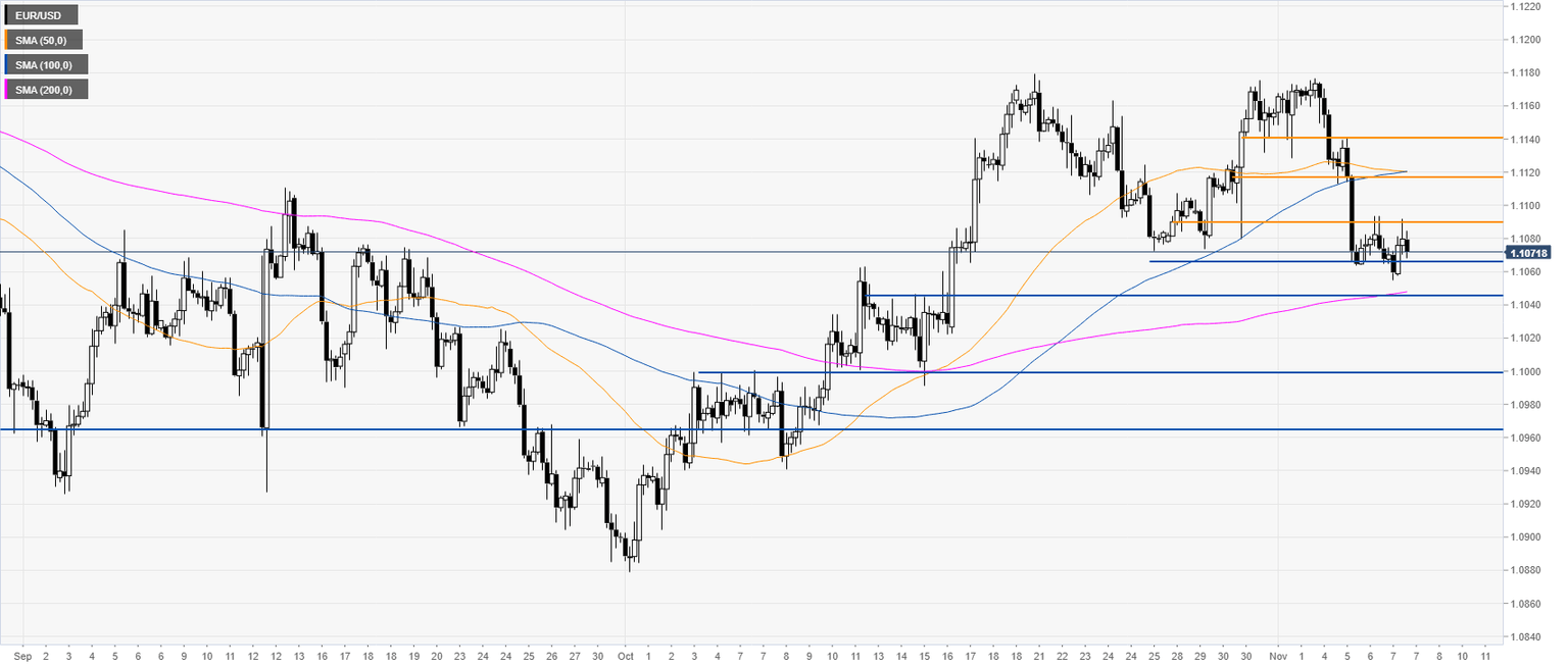 Fiber is trading below its 50 and 100 SMAs on the four-hour chart. The market is starting the New York session trading in a tight range below the 1.1090 resistance. Bears will need a daily close below 1.1045 to trigger further weakness towards the 1.1000 figure and to the 1.0964 price level if the bears gather enough steam, according to the