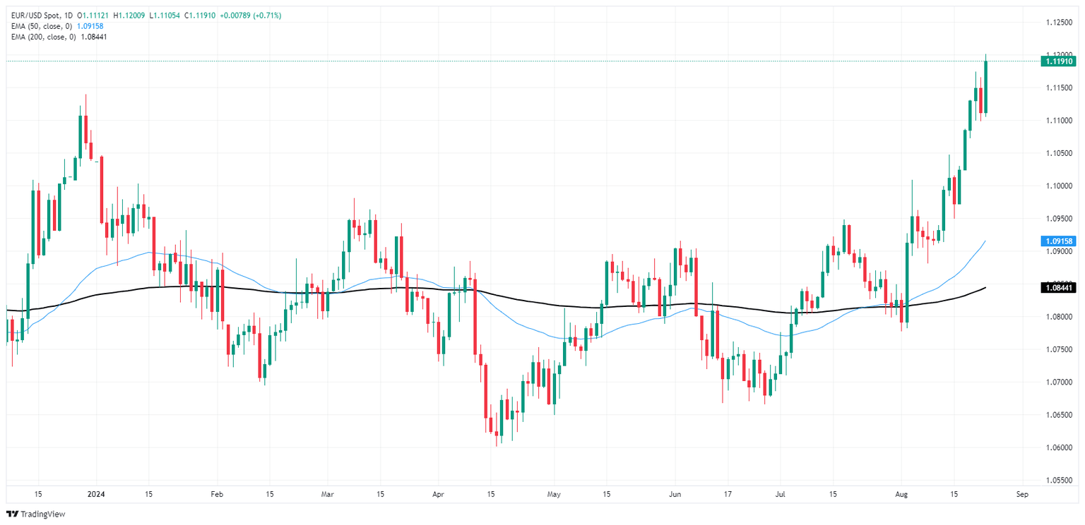 EUR/USD rallied into its second-best day of August, climbing seven-tenths of one percent as the US Dollar tumbles across the board. Market risk appetite is pinned into the ceiling after Federal Reserve (Fed) officials broadly tipped their hand to investors, signalling that the US central bank is finally ready to start cutting interest rates.
