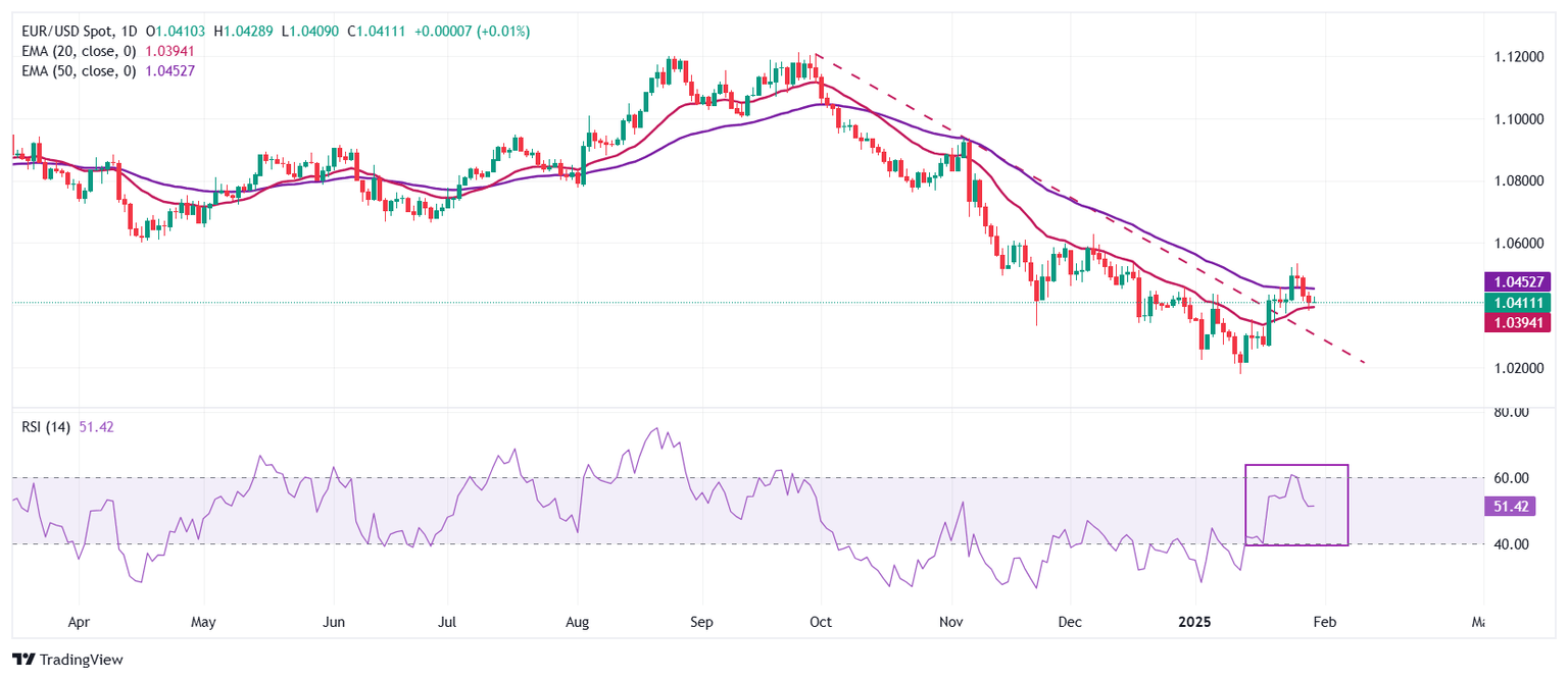Looking down, the downward-sloping trendline from the September 30, 2024, high of 1.1209 will act as major support for the pair near the round level of 1.0300, followed by the January 20 low of 1.0266. Conversely, the December 6 high of 1.0630 will be the key barrier for the Euro bulls.