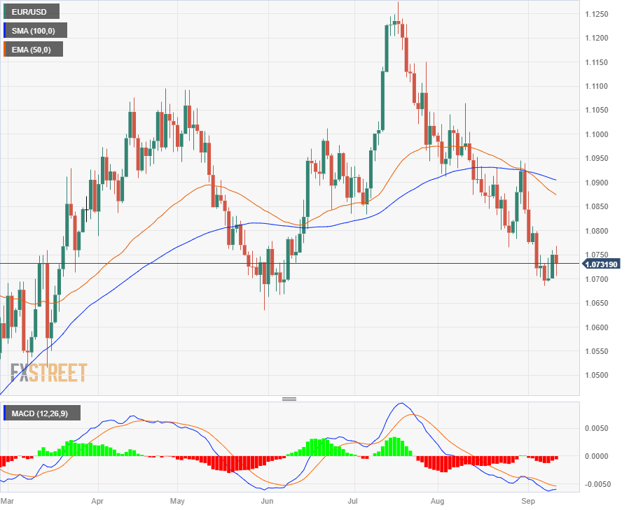The Euro got knocked lower against the USD in early Tuesday trading after an initial climb up the charts, and the pair is struggling to build meaningful momentum from the 100-hour Simple Moving Average (SMA). The hourly MACD histogram indicator is beginning to rotate bullish, with the fast-moving average gearing up to swap places with the indicator line.