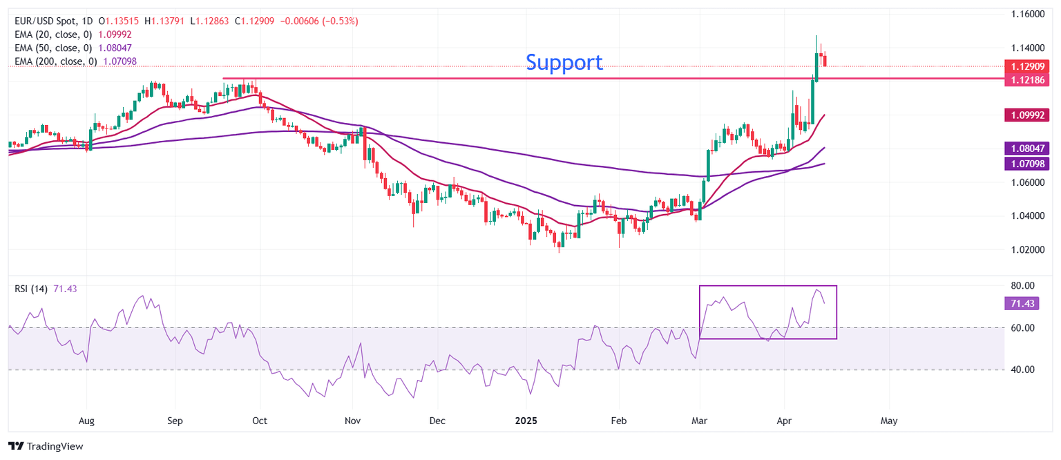 EUR/USD slumps to near 1.1300 in Tuesday’s North American session. However, the overall outlook of the major currency pair is strongly bullish as all short-to-long Exponential Moving Averages (EMAs) slope higher.