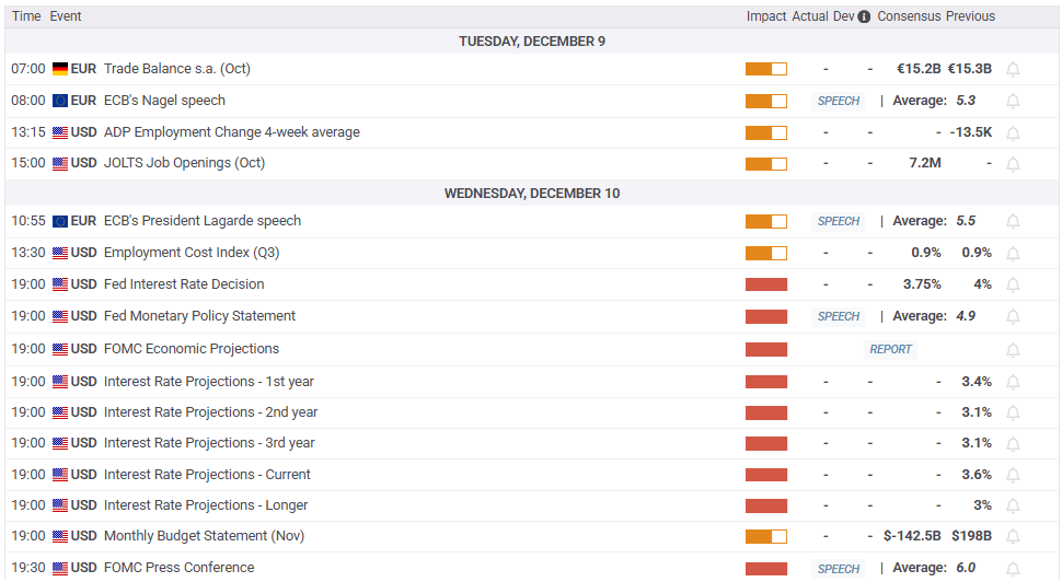 - EUR/USD slips 0.05% as stronger US Dollar and rising Treasury yields weigh ahead of Wednesday’s Fed decision.