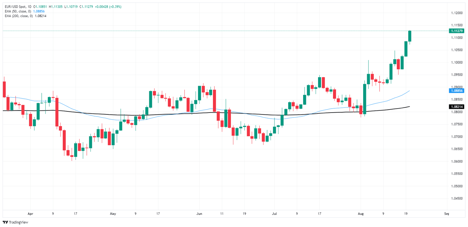 EUR/USD drove up 0.4% on Tuesday, breaching back above 1.1100 for the first time since last December, chalking in a fresh high for 2024. The pair has closed firmly in the green for three straight trading days, and is on pace to climb a full percent since Monday’s opening bids.