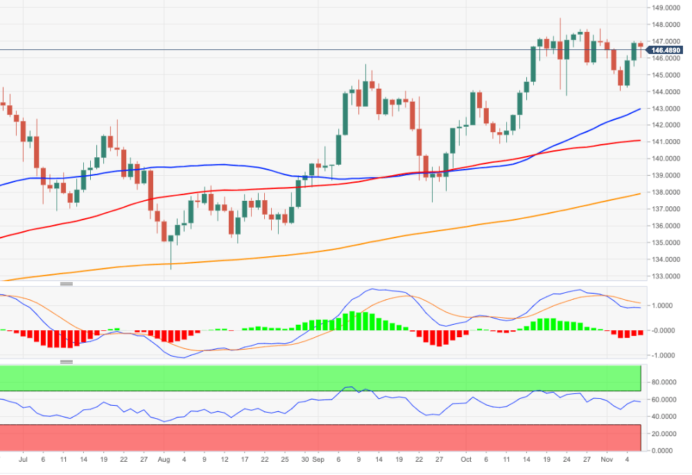 The cross seems to have embarked on a consolidative phase, with the upper end of the range limited by the 147.00 area. A breakout of the latter should open the door to extra gains to, initially, the 2022 top at 148.40 (October 21) ahead of the round level at 150.00.