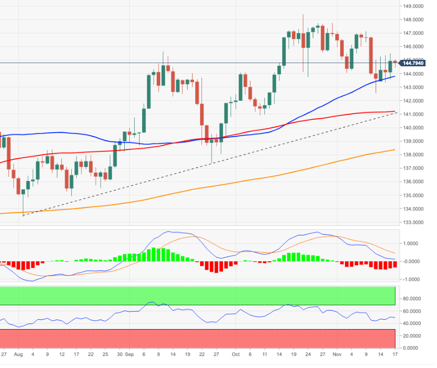 In the meantime, further gains look in store in the near term as long as the cross navigates above the 3-month support line near 141.20. This area of contention is also propped up by the October lows in the 141.00 region.