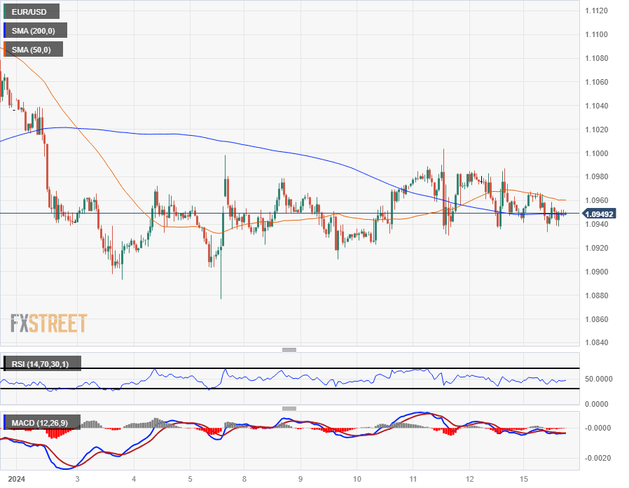 The EUR/USD has consolidated firmly into the 200-hour Simple Moving Average (SMA) near 1.0950, keeping the pair trapped below the 50-day SMA near 1.0960 as the pair slumps into the midrange. The EUR/USD remains capped by the 1.1000 major handle in the near-term as 2024 develops into a sideways grind.