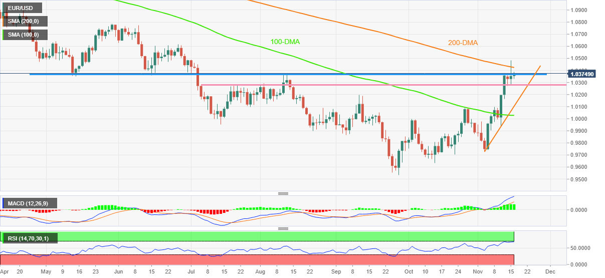 EURUSD price pierces a six-month-old horizontal resistance area surrounding 1.0350 as bulls approach the 200 Daily Moving Average (DMA), close to 1.0425 by the press time.