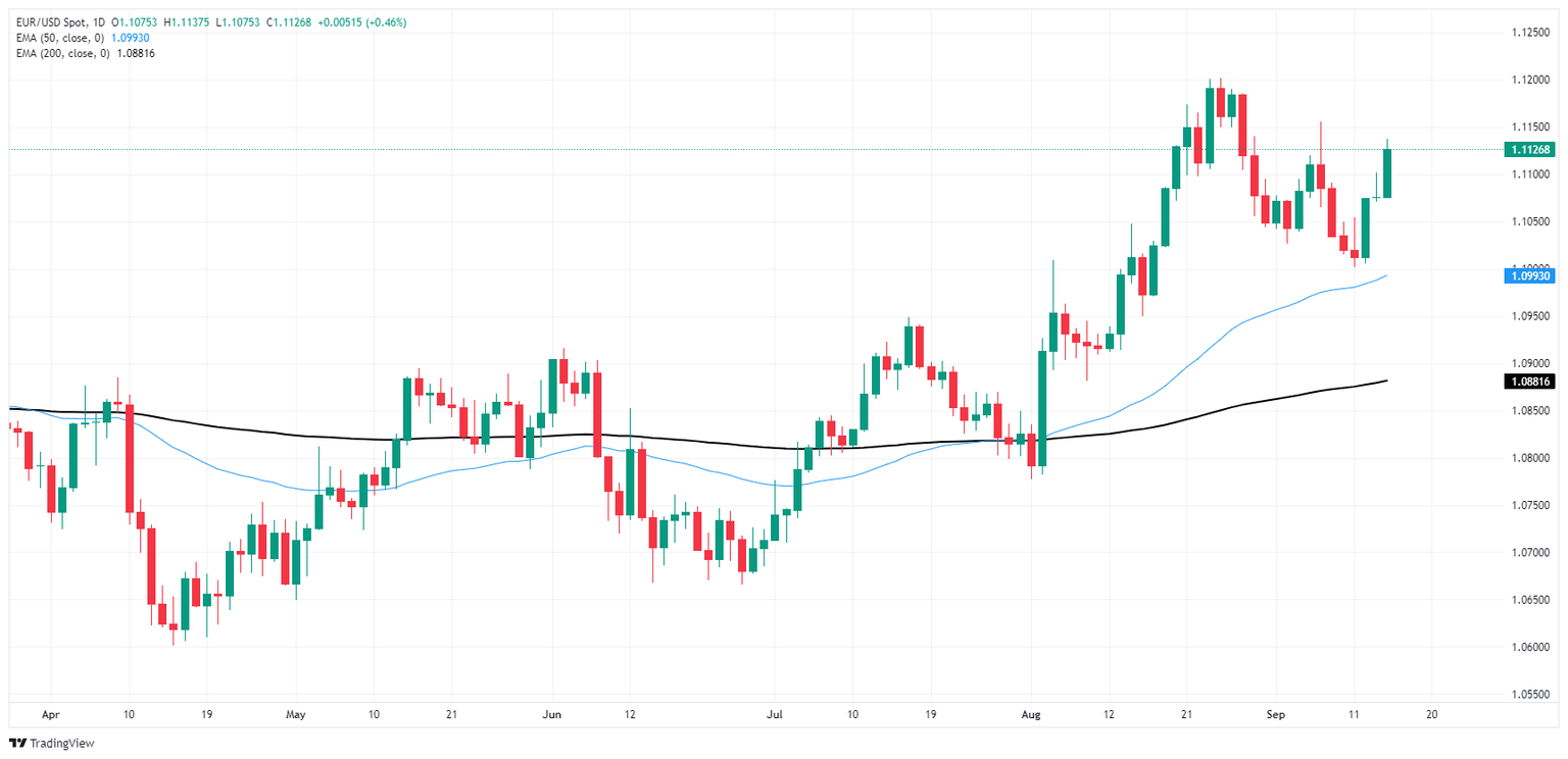 EUR/USD rose on a tide of Greenback shorting pressure on Monday, with bids getting lifted back above the 1.1100 price handle that flummoxed intraday action to cap off last week. Risk-on market sentiment has kicked off the new week firmly in control as investors stare off into the distance at expected rate cuts from the Federal Reserve (Fed).