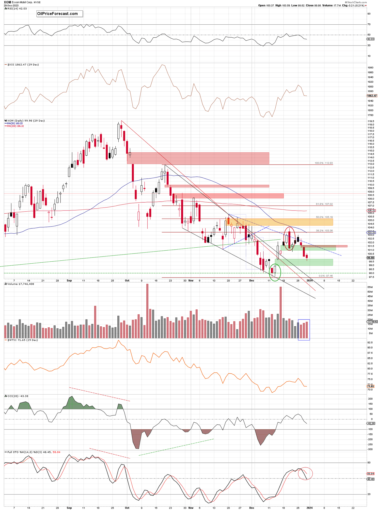 Thanks to that drop, the sellers created pro-declining bearish engulfing pattern, which reinforced the mentioned resistance area. As you see, there was another attempt to move higher, but the bulls were disappointed once again, which resulted in one more downward move, which took the stocks to the support area based on the green gap created on Dec. 14 (98.92-99.85).