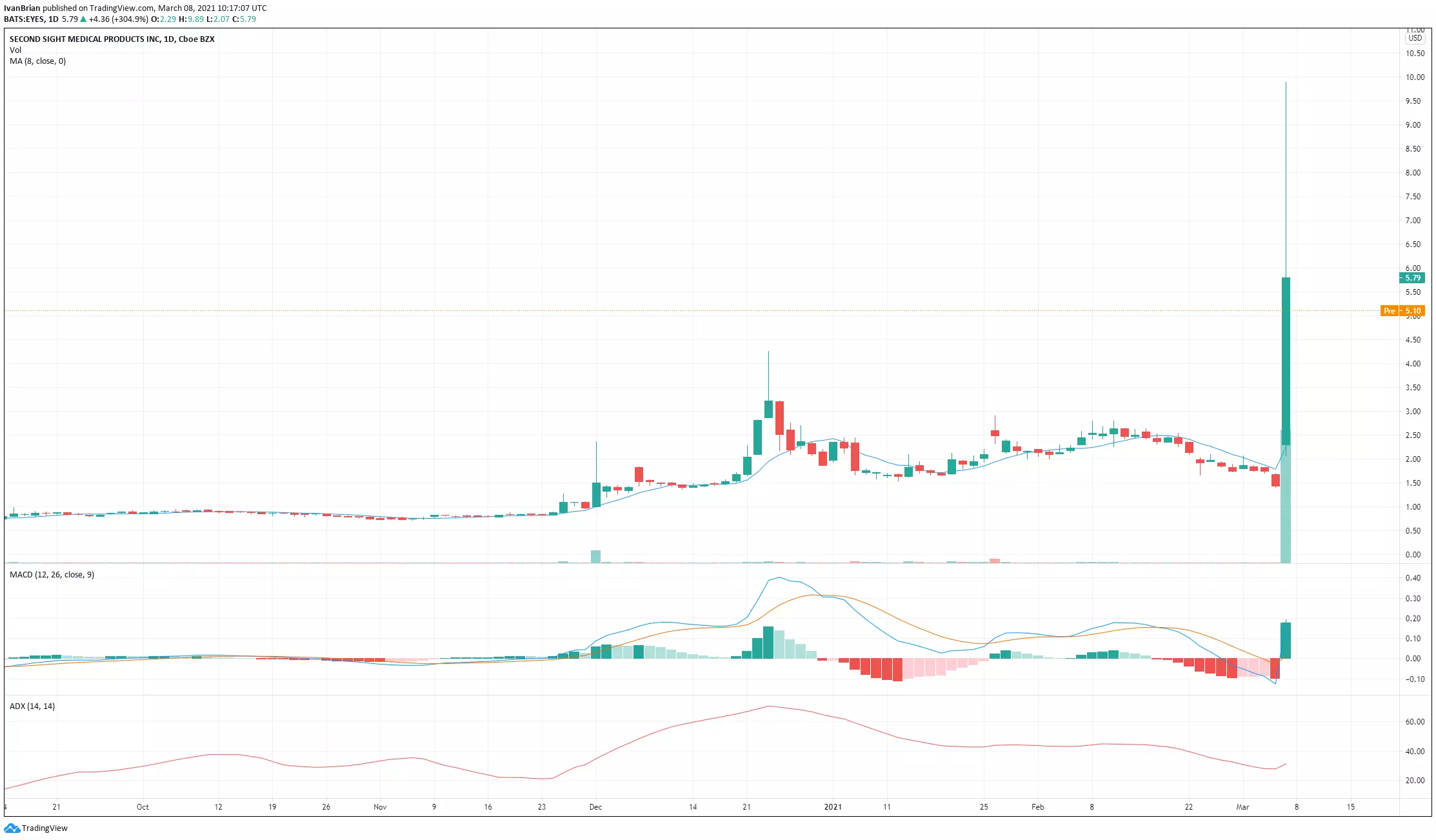 - EYES shares move from $2 to nearly $10 on Friday after FDA approval.