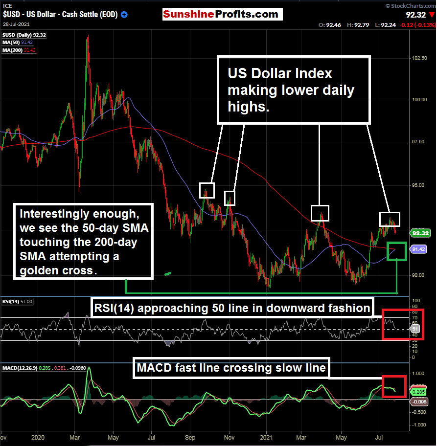 Figure 1 - US Dollar Index November 1, 2020 - July 28, 2021, Daily Candles Source stockcharts.com