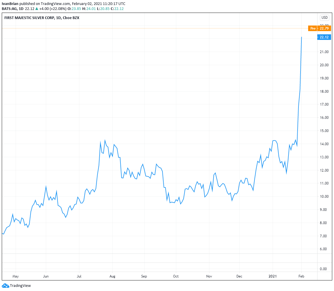 First Majestic (AG) released a positive update on January 20 with silver production higher than previously guided at 11.6 million ounces. Q4 earnings for AG are due to be released on February 4, 2021.