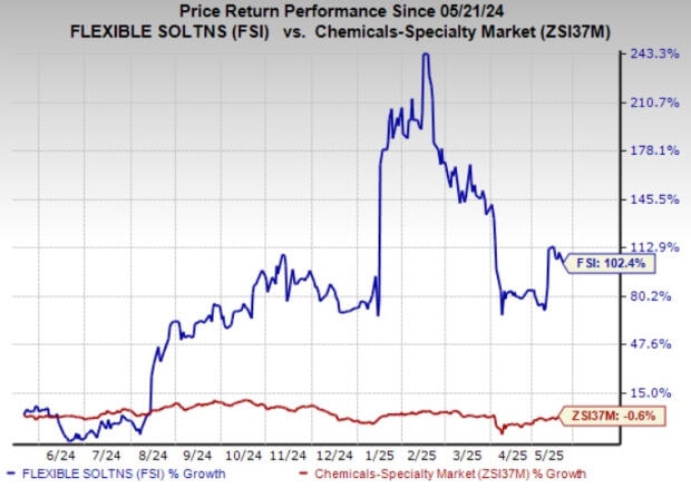 Shares of Flexible Solutions have rallied 102.4% over a year against the Zacks Chemicals Specialty industry’s 0.6% decline.