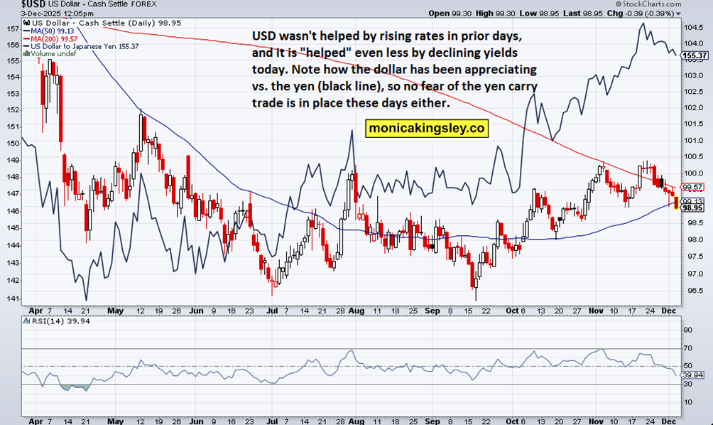No spilling the beans this time, I‘ll present a few charts from bonds to USD, and highlight (advance techniques of reading) volatility metrics and high beta tickers such as PLTR and HOOD to your attention as it‘s not about just NVDA, GOOGL or META. Financials and industrials are well worthy of your attention too – and clients know I have been talking discretionaries and retail names lately…