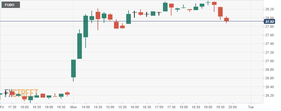 The company announced a share offering this week that could raise up to $750 million. FUBO rose sharply on Monday as investors appear in a bullish mood ahead of results. FUBO closed at $27.93 for a 6.6% gain.