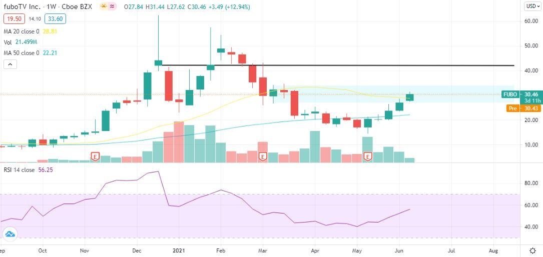 FuboTV Stock Price: 13% spike pushes FUBO above 20-week moving average