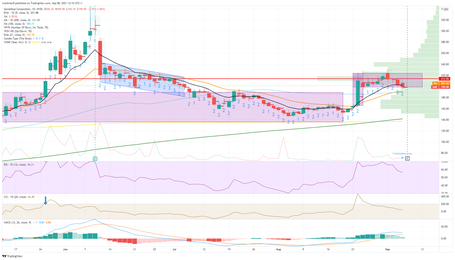 GameStop (GME) shares took a breather on Tuesday as the stock fell nearly 2% to close at $199. The stock has been trading lightly as traders await the results due to be released after the close on Wednesday. There is a conference call after those results at 1700 EST/2200 BST. The earnings per share (EPS) number is expected to come in at -$0.66, while revenue is expected to come in at $1.12 billion. While the numbers themselves are important, the conference call will carry equal weight in the minds of traders as GameStop's transformation is what attracted them into the stock in the first place. They will want to hear how the transformation into an online presence is going under the guidance of Ryan Cohen and his new appointments.