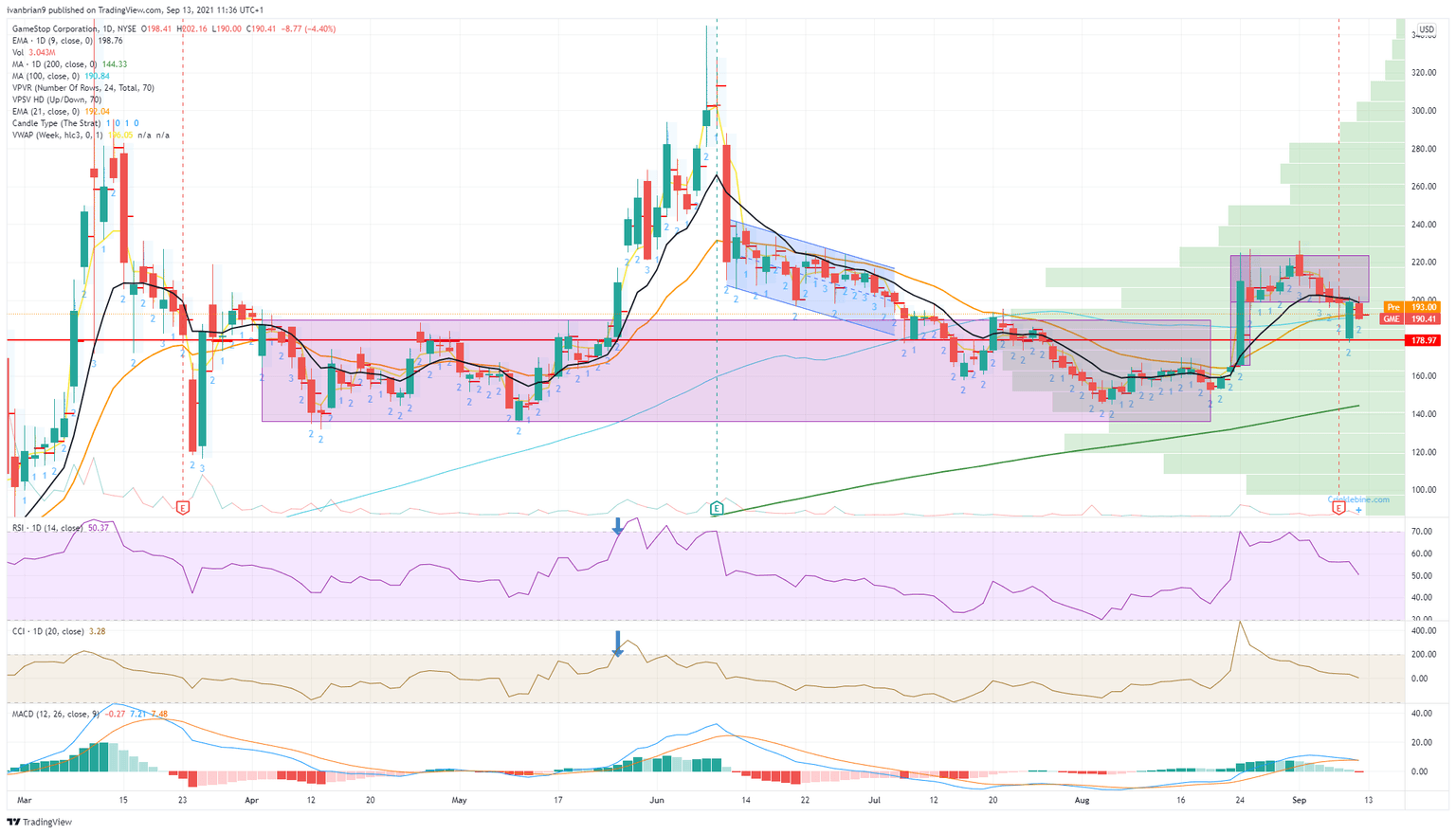 GME stock has been struggling for form since releasing results last week, after the close on September 8. The results were mixed with the Earnings Per Share (EPS) number missing estimates but revenue coming in ahead of estimates and showing steady progress. However, investors in GameStop were frustrated by any lack of clarity on the post-earnings conference call as to potential turnaround plans for the business. Ryan Cohen has been tasked with doing for Gamestop what he did for Chewy (CHWY), but Cohen had hinted in the summer that he would not be detailing plans as he did not want to let competitors know the plans for GME. Not providing earnings guidance going forward will also likely have hit investor sentiment in GME.