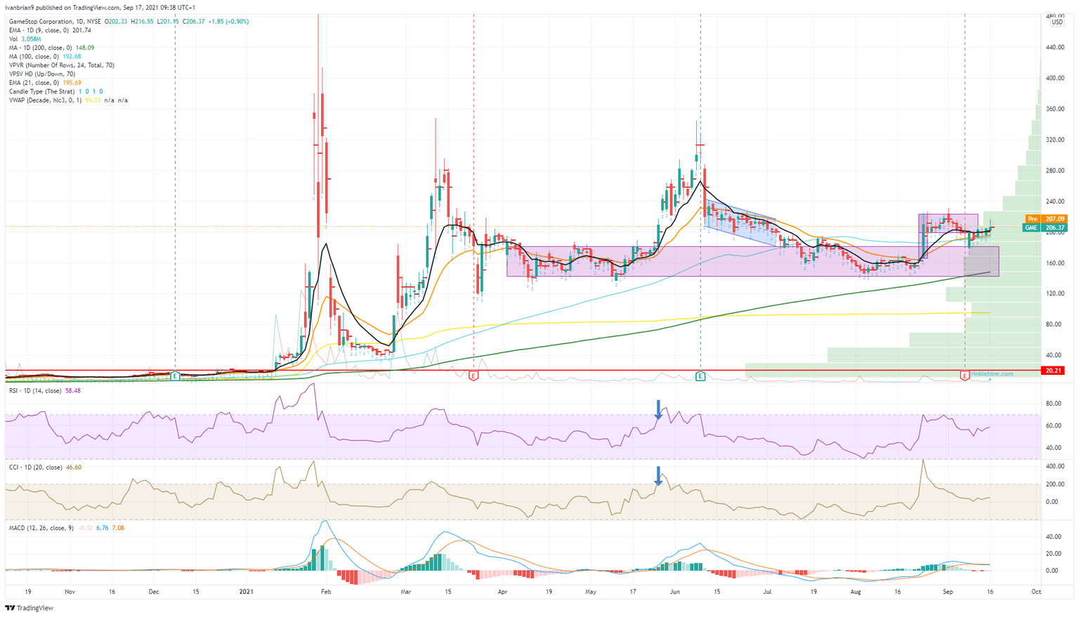 GameStop (NYSE: GME) appears to be the forgotten name among meme stock traders who have found some new names to entertain themselves with despite GME being the original of the species. GameStop shares barely registered a move this week and have struggled for momentum since a disappointing earnings release on September 8. The numbers were not what disappointed investors most, rather it was the lack of any guidance from the management team led by the transformative Ryan Cohen. Supposedly, the conference call after results lasted barely 10 minutes and investors had been hoping Ryan Cohen would outline future plans for Gamestop and how he planned to turn an ailing retailer around just as he had done for Chewy before. Ryan Cohen had hinted in June that he would not be giving too much away as he did not want to alert potential competitors as to his plans for GameStop, allowing them no time to react. Also disappointing though was the lack of any forward financial earnings guidance. The stock fell sharply after the release but did manage to recover quickly and since then it has pretty much been steady trading for GME, a unique feature for the stock.