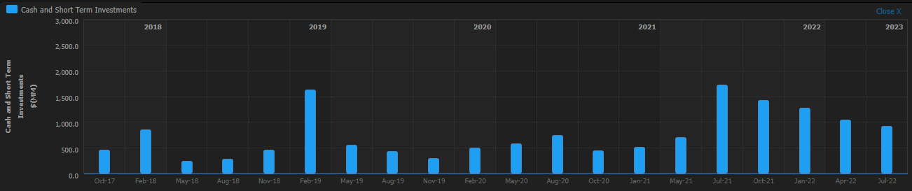 GameStop has a lot of cash and no debt, but it is burning through that cash pile as we can see below. This is not a good look. It buys the company time, but it needs to turn around.
