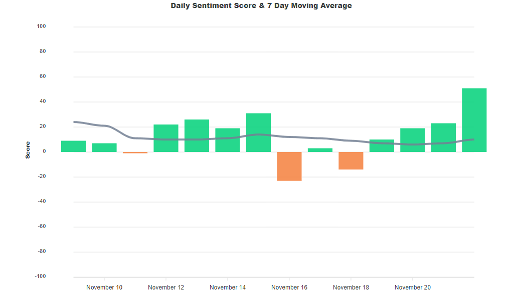 Sentiment has been rising with SocialSentiment.io showing a spike in recent days.