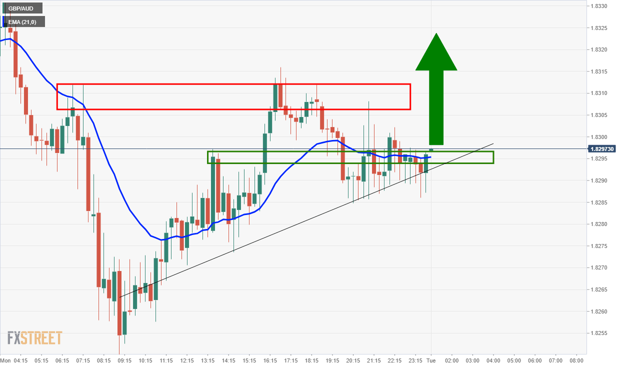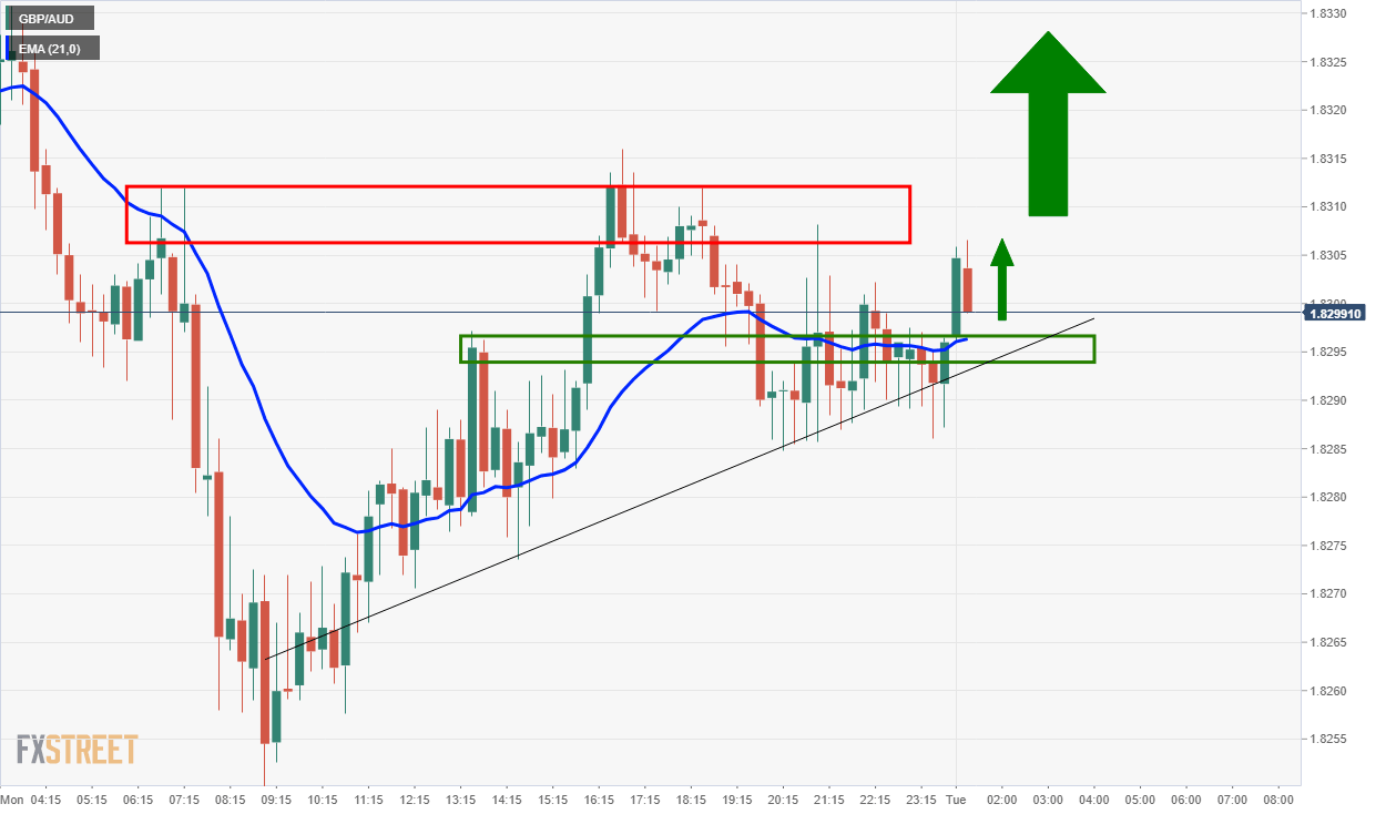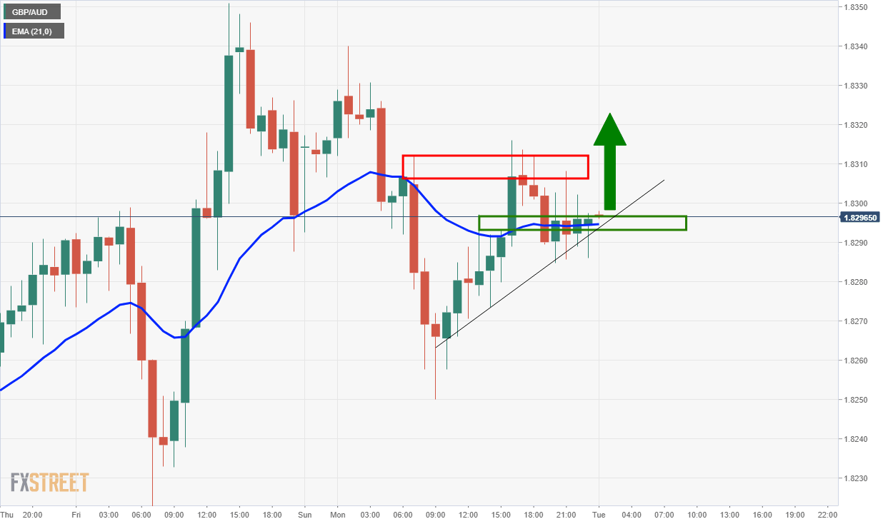 GBP/AUD is taking on the hourly resistance and the 1.83 level as traders get set for the Reserve Bank of Australia minutes.
