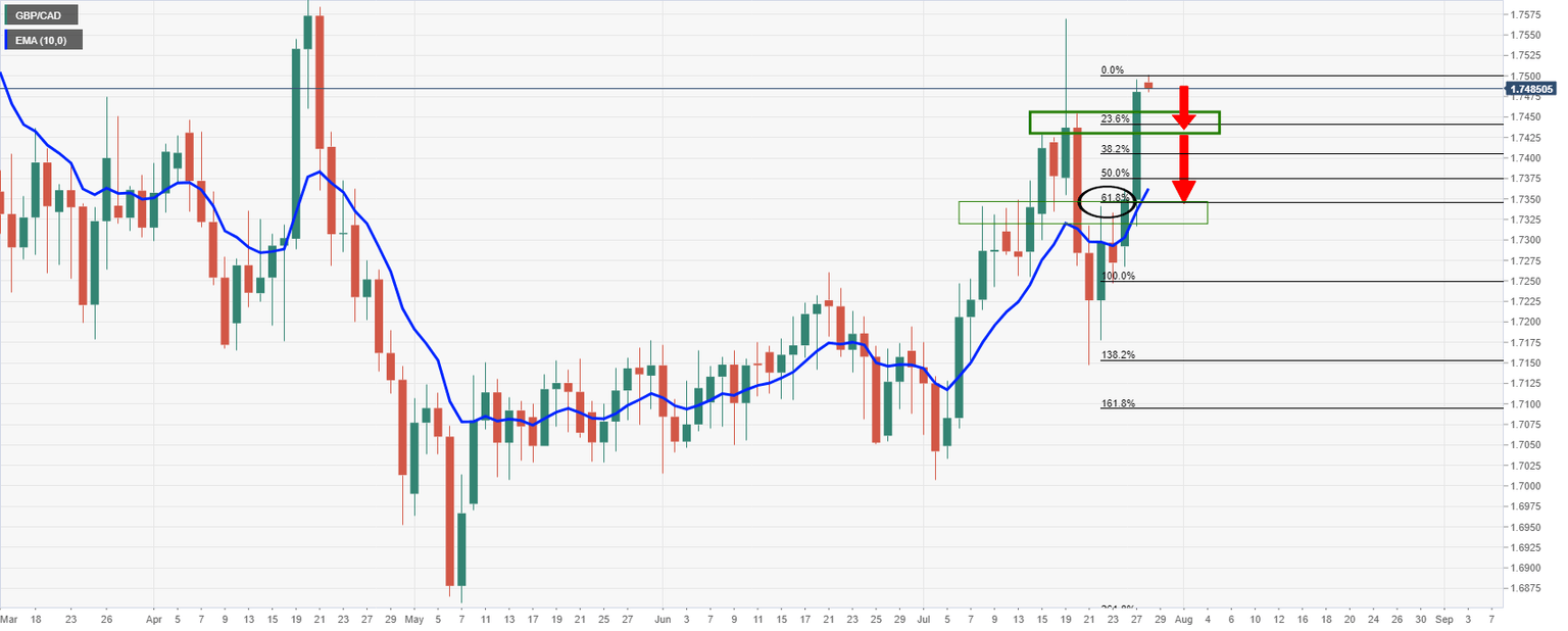 GBP/CAD is a complicated mix of net shorts and technical pointing to a downside continuation in the pending correction towards the daily structure.