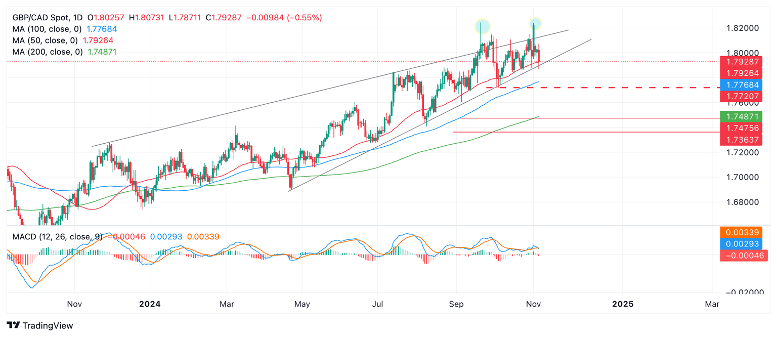 GBP/CAD Price Prediction: Price flirts with lower boundary line of Rising Wedge pattern