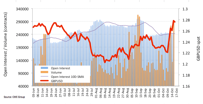 Auspicious headlines from the Brexit front helped Cable to regain the boundaries of the 1.28 neighbourhood on Tuesday. Rising open interest and volume coupled with positive developments from the Brexit front should keep GBP/USD bid in the near term at least.